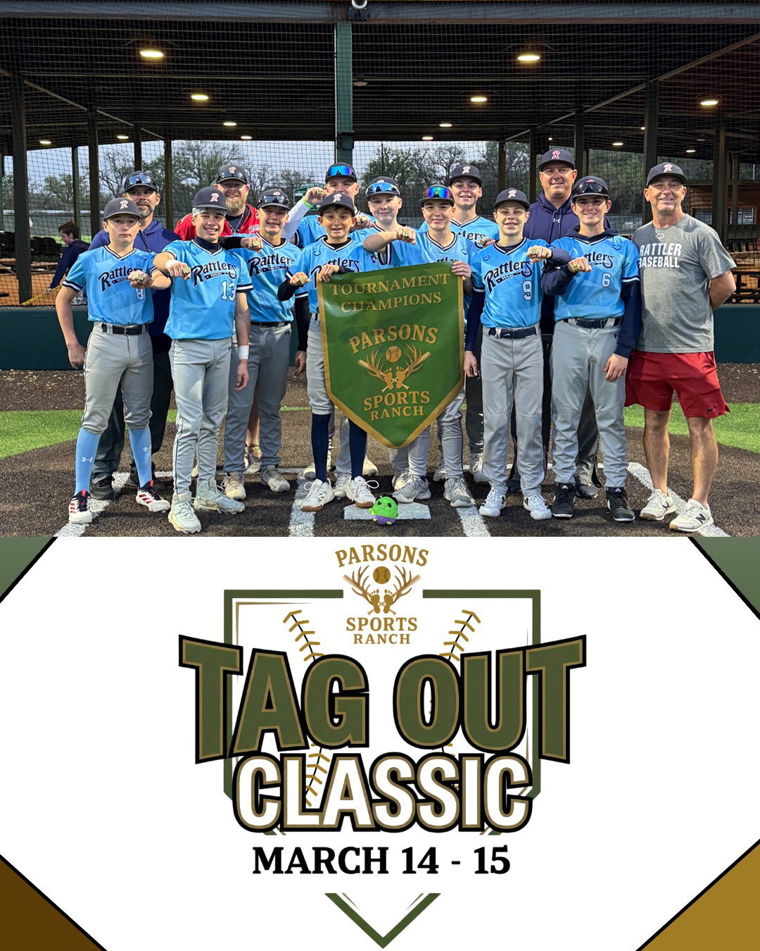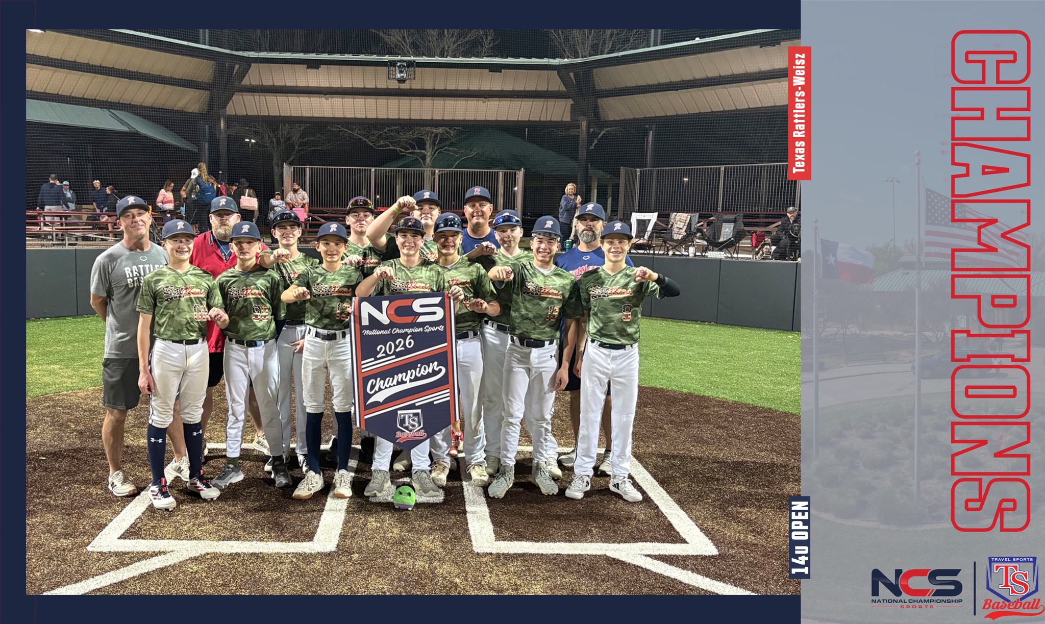 Texas Rattlers select teams are well known throughout the area and region and regularly place in tournaments. The teams practice at Town of Flower Mound parks and most teams play a league schedule through the Texas Elite Baseball Association (TEBA) with at least half of that schedule played in Flower Mound.